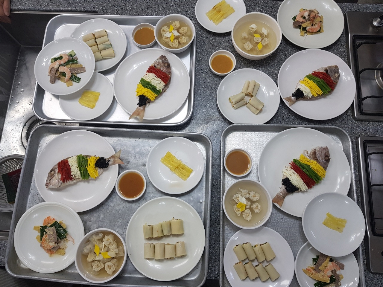한식조리기능장 실기메뉴_도미찜. 석류탕. 밀쌈. 도라지정과. 대하잣즙무침