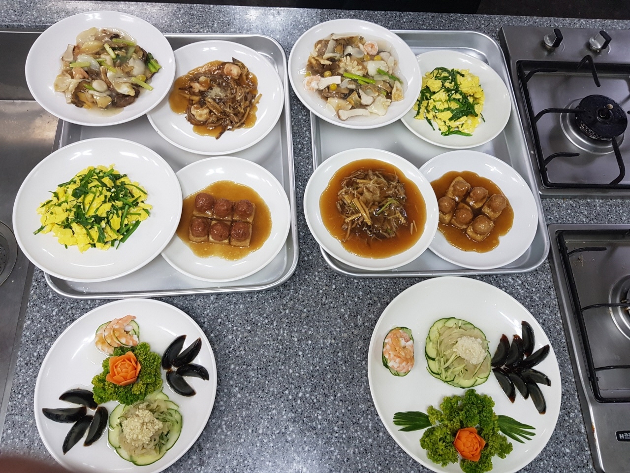 중식조리기능장 실기메뉴_삼품냉채. 달걀 부추볶음. 홍소삼사어치. 홍소양두부. 전가복