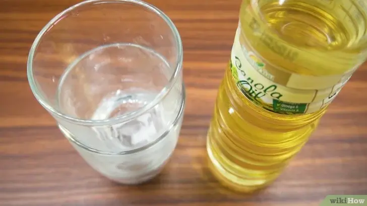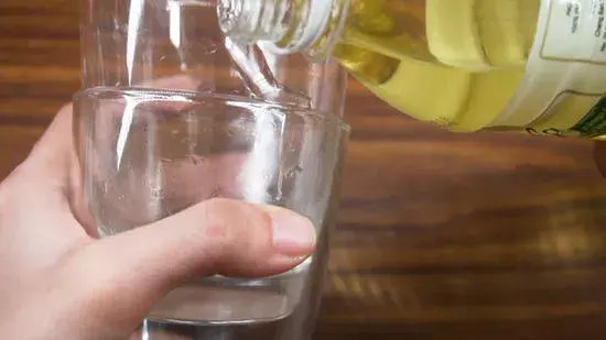 2. 오일을 두 개의 컵 사이에 붓는다.