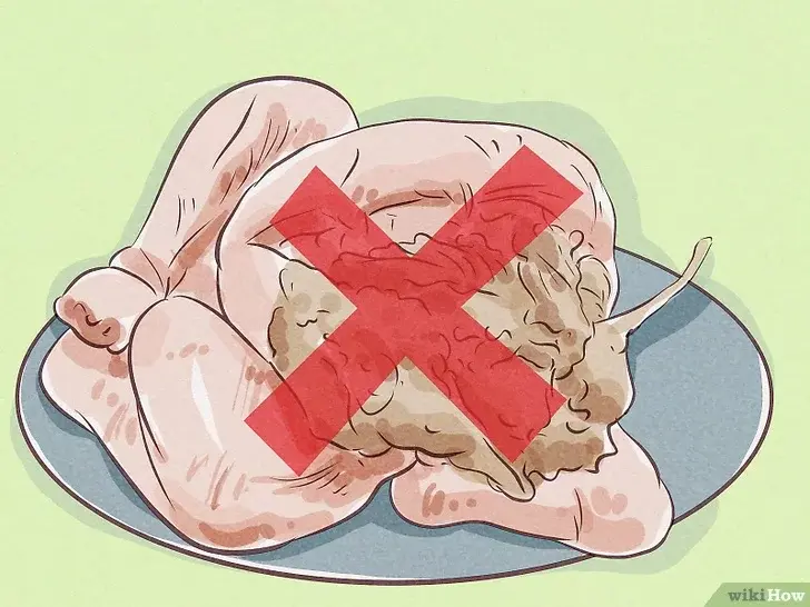 익히지 않은 가금류는 얇은 액체막이 있고 점액같은 것으로 덮여있지 않다. 가금류가 끈적거리거나 지나치게 끈끈하면 버린다.